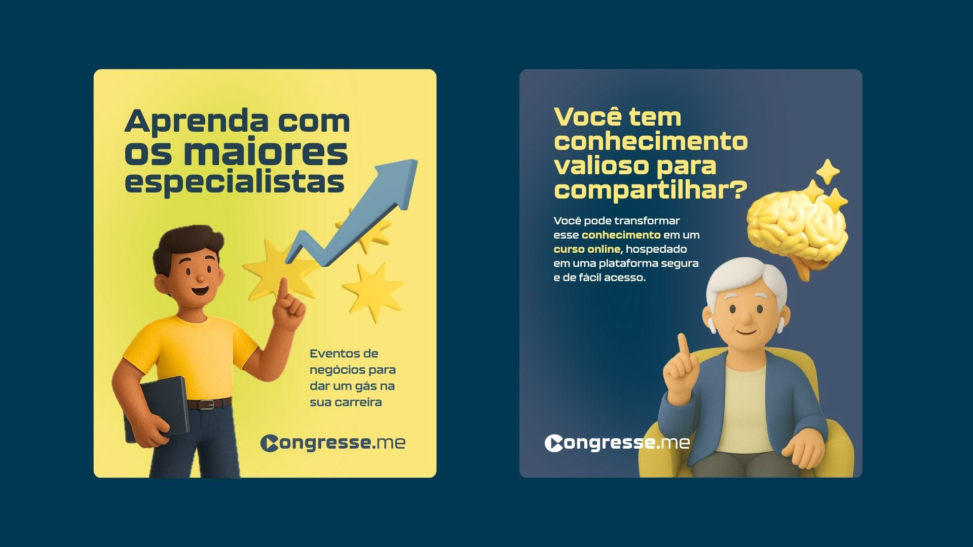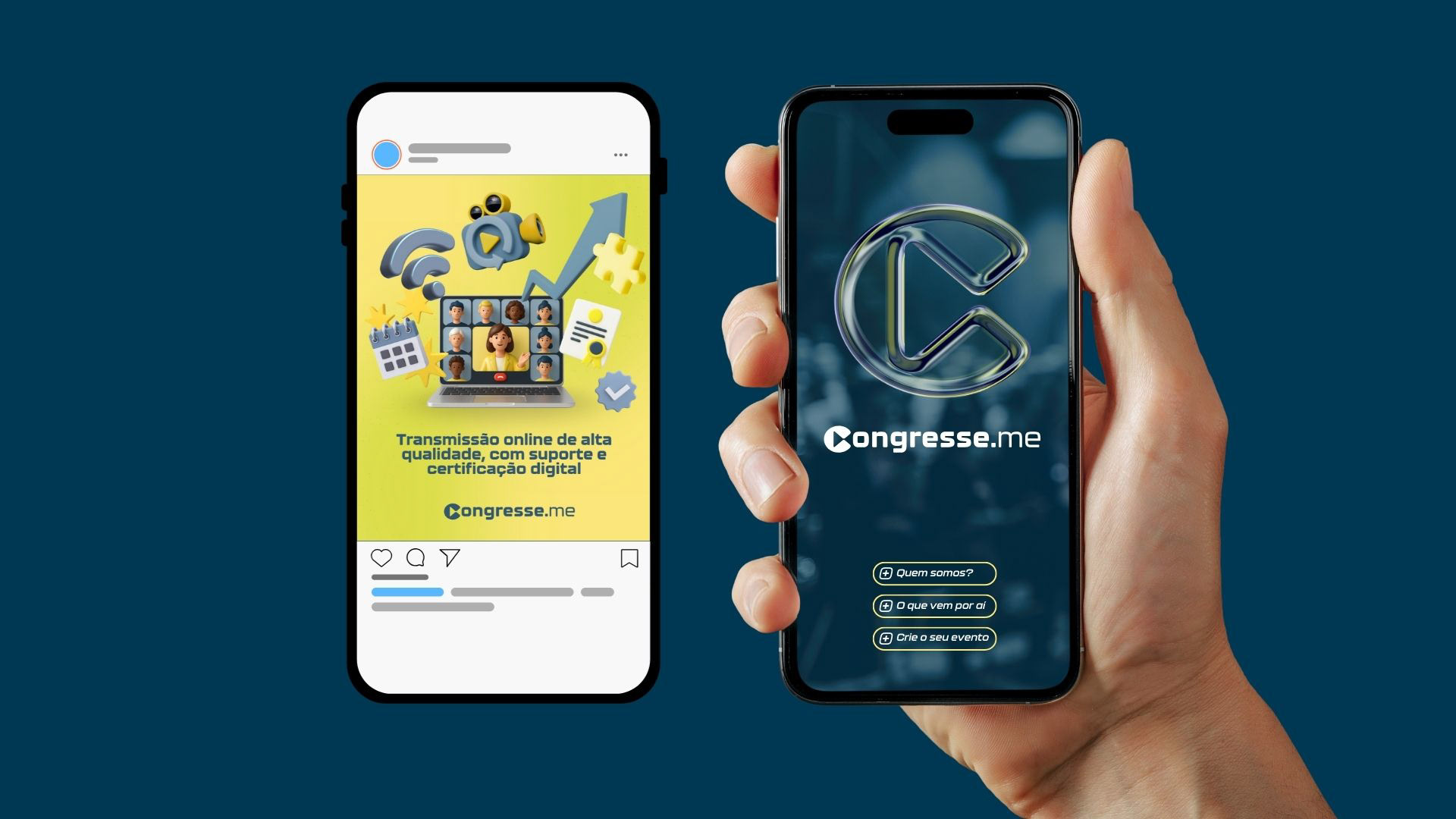 A Congresse.me é uma plataforma para divulgação e transmissão para Congressos e Eventos técnicos e científicos. A Identidade busca transmitir confiança e modernidade.