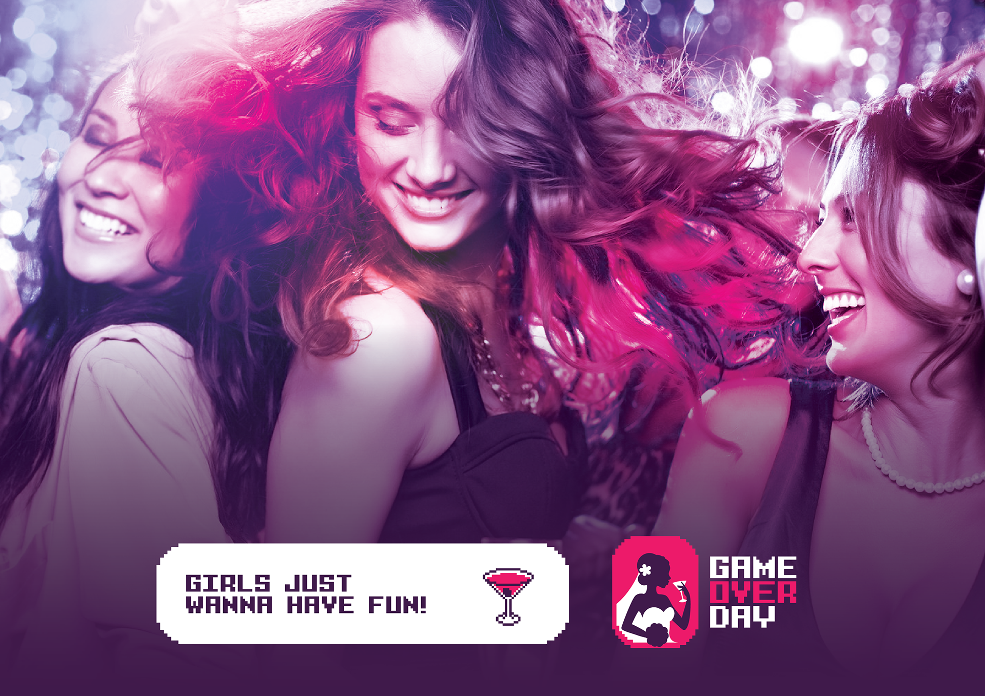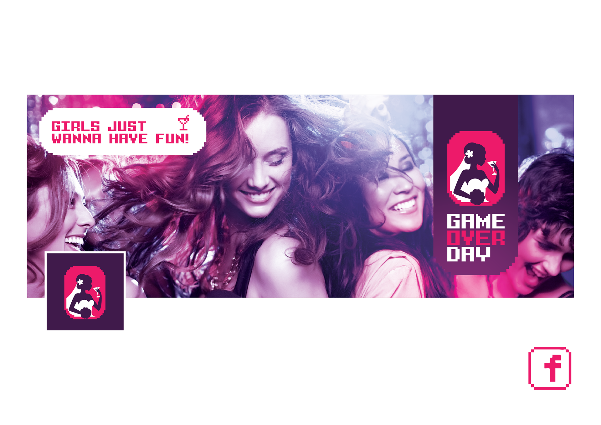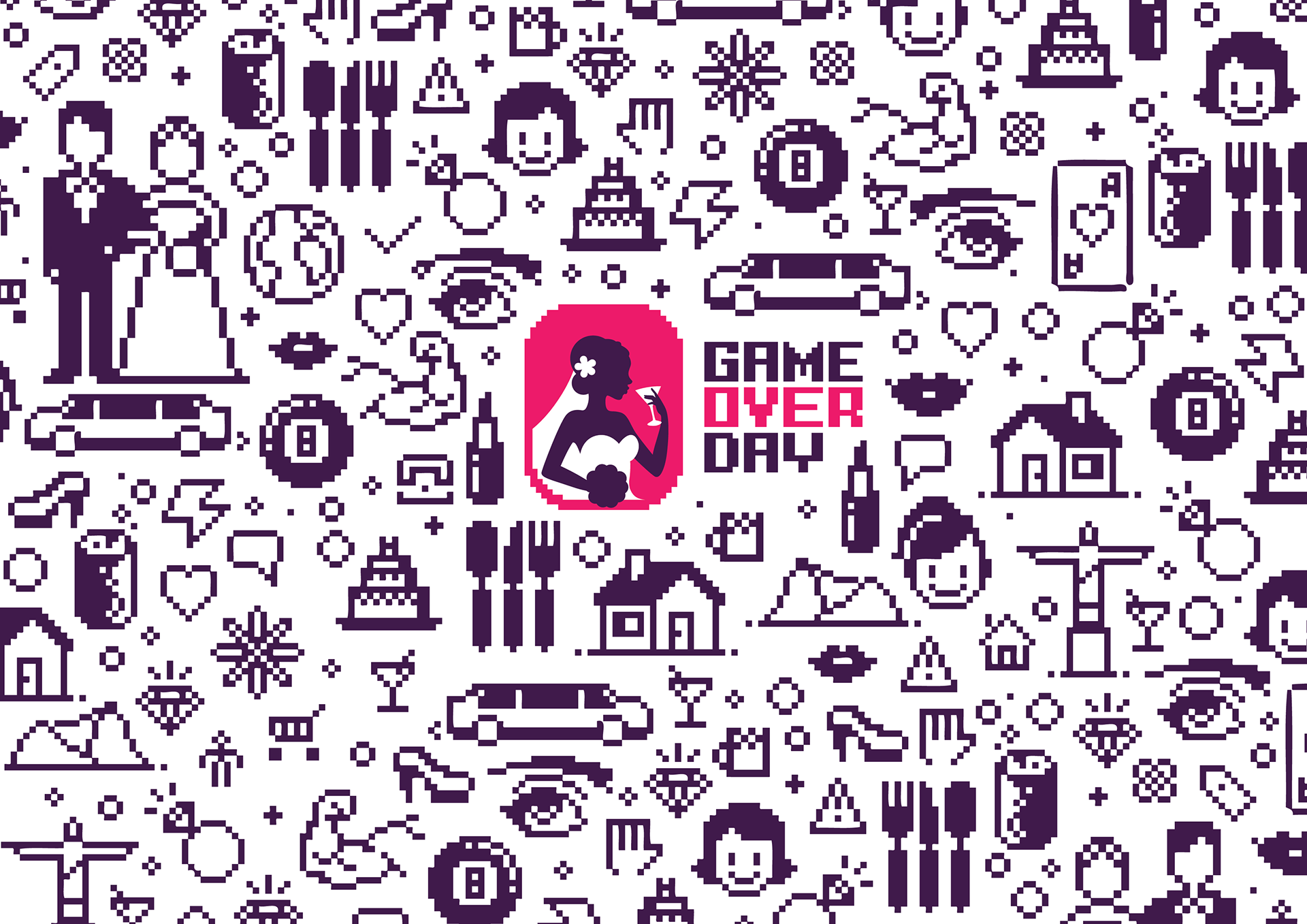 Identidade visual para a marca Game Over Day, especializada em despedida de solteiras no Rio de Janeiro, Brasil.