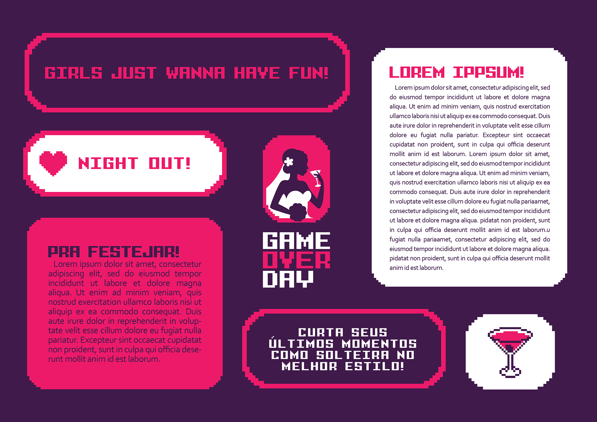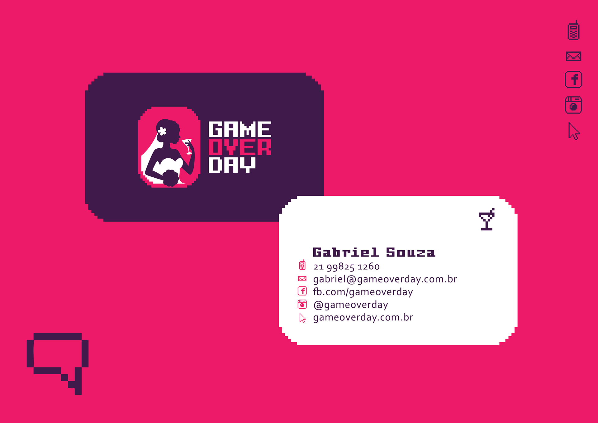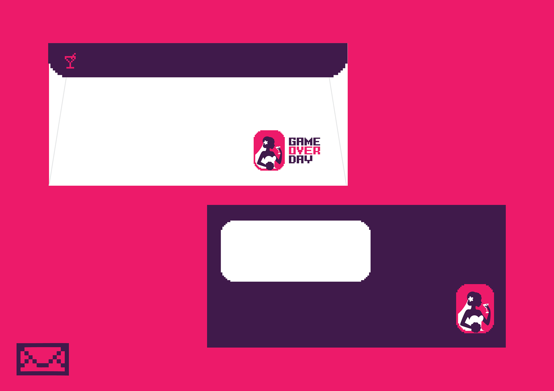 Identidade visual para a marca Game Over Day, especializada em despedida de solteiras no Rio de Janeiro, Brasil.