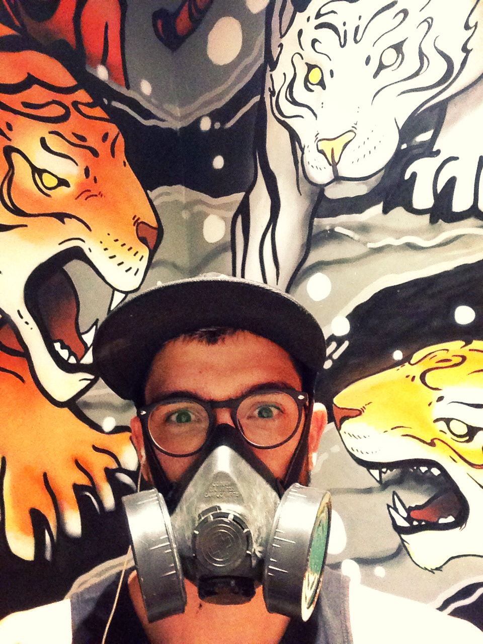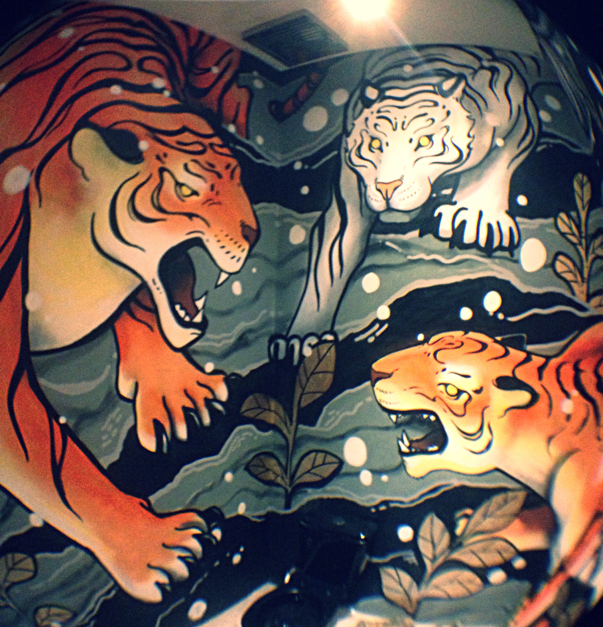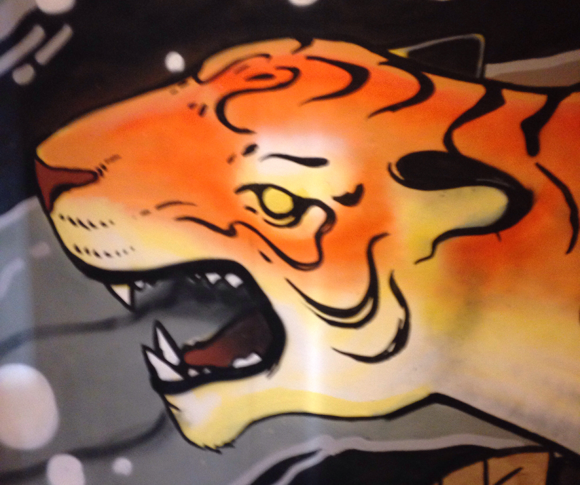 Mural realizado no banheiro da Hamburgueria Bali Burger em Uberlândia - MG.