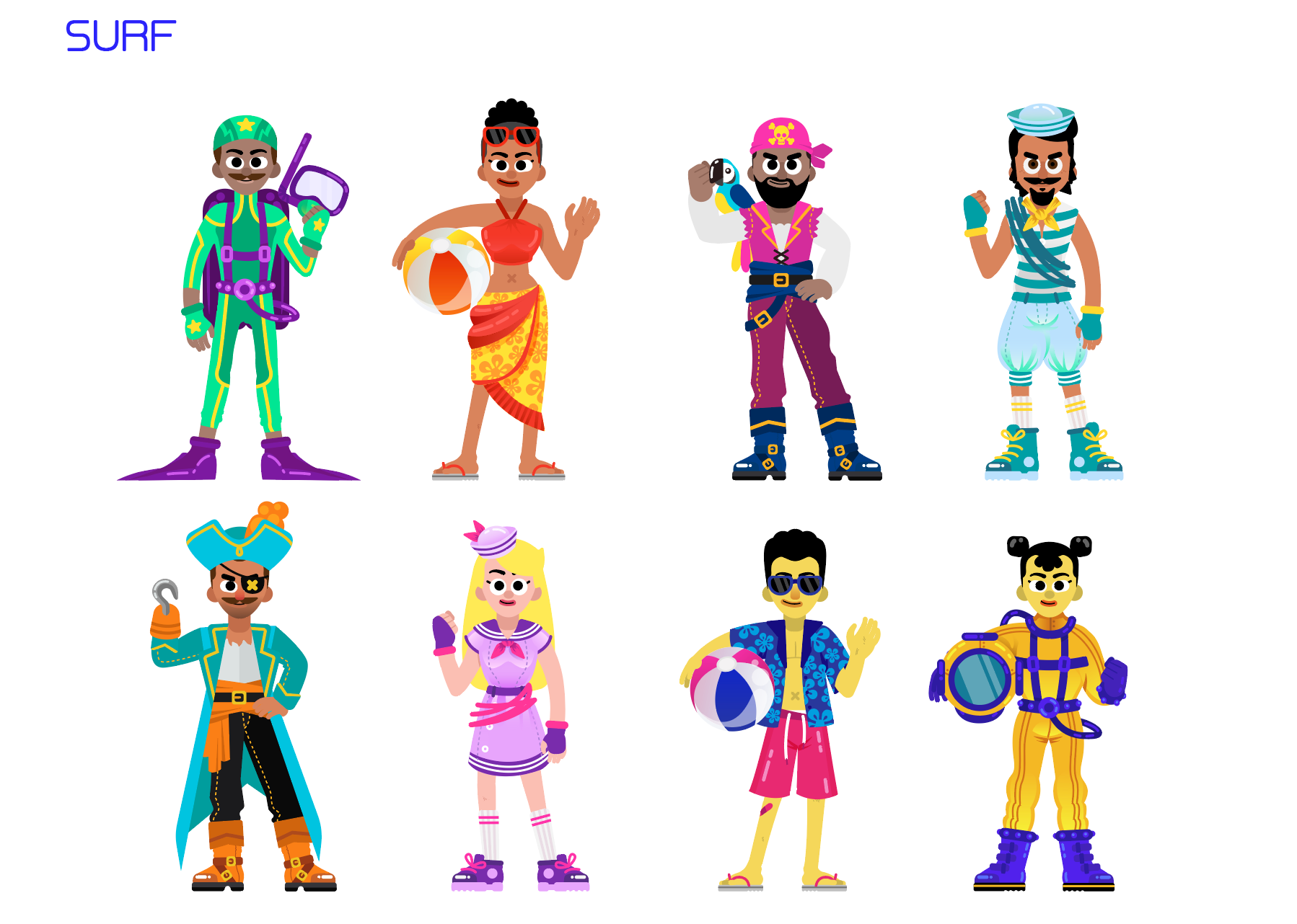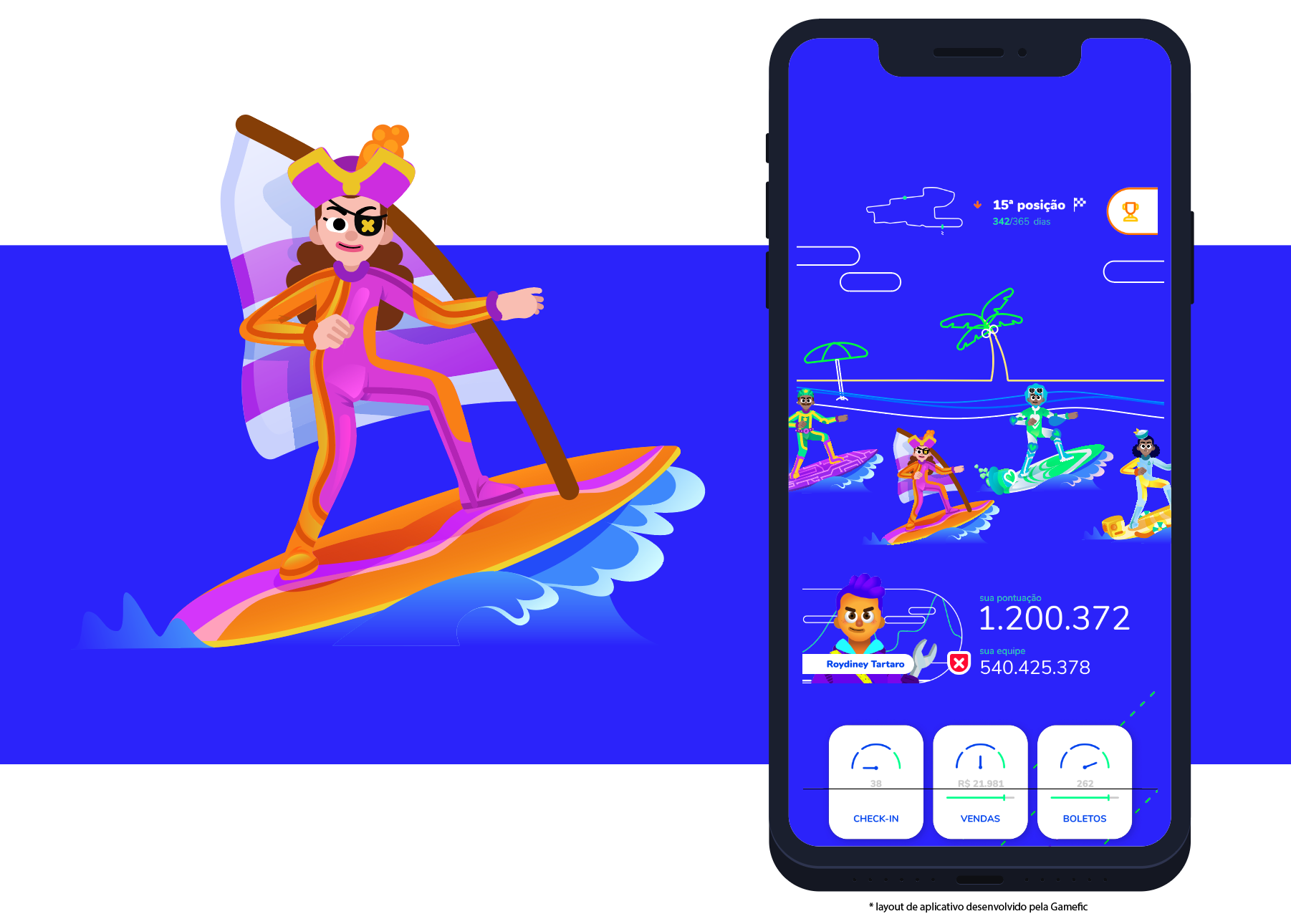 Personagens, veículos e animações criados para plataforma de gestão baseada no conceito de gamificação para aumentar o desempenho e a produtividade de equipes.